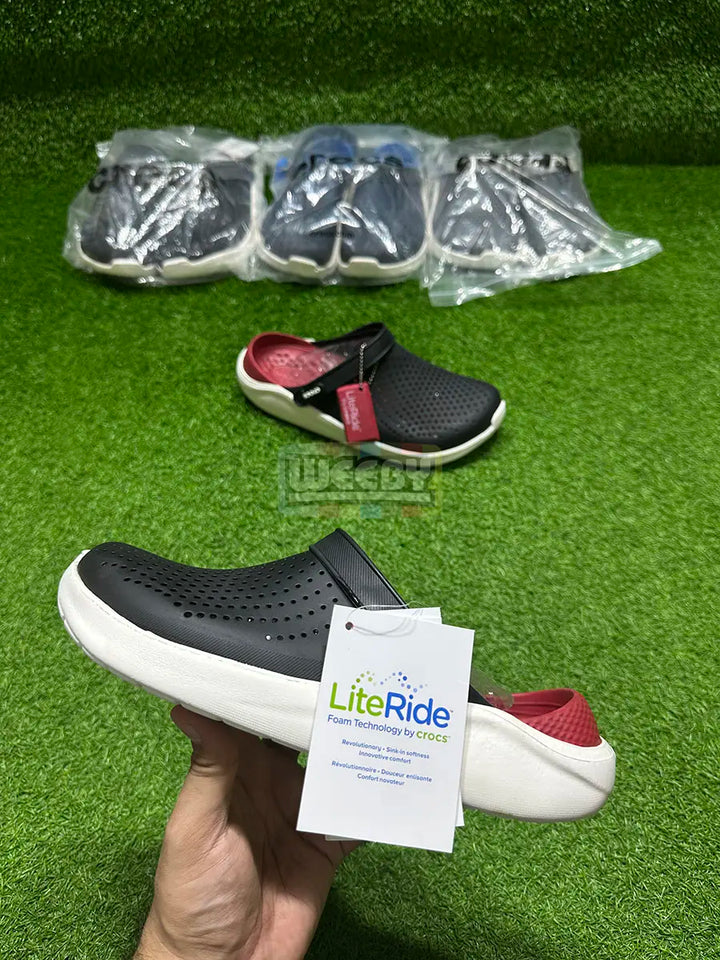 Crocs LiteRide Clogs (Black/W/Red) (Super Soft)
