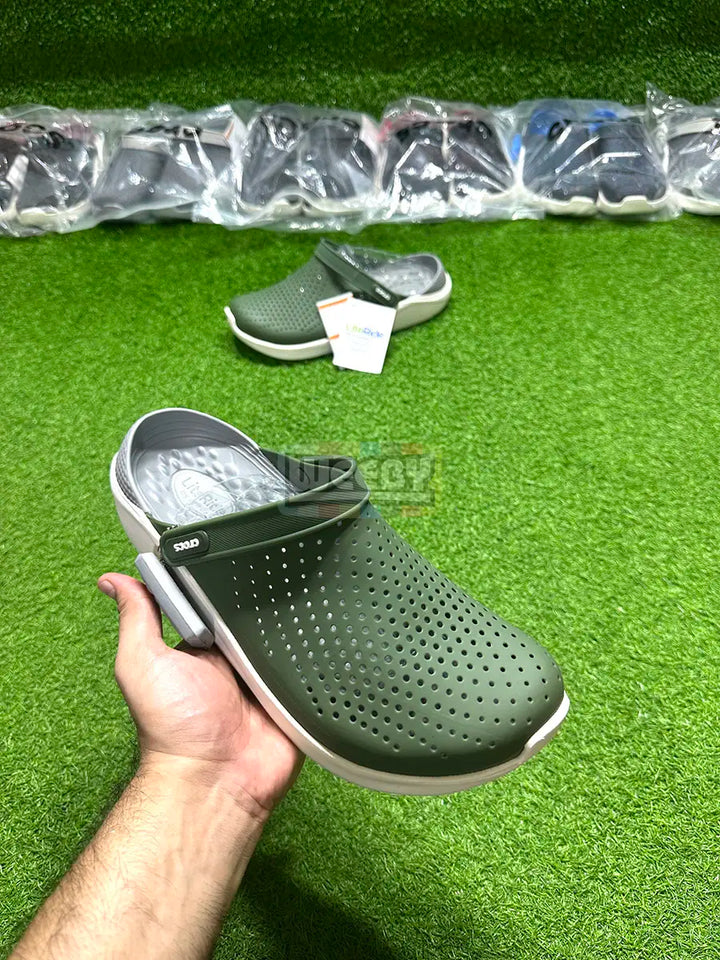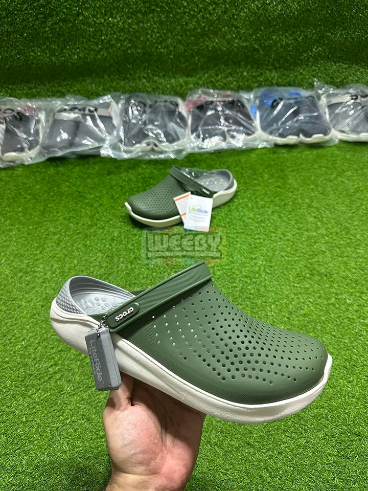 Crocs LiteRide Clogs (Olive/White) (Super Soft)