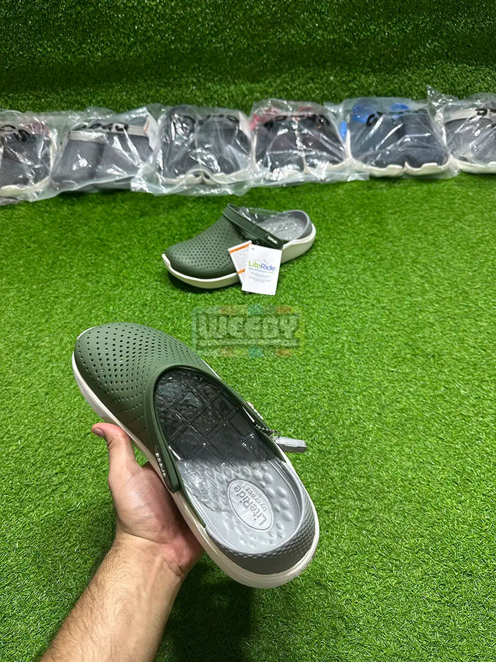 Crocs LiteRide Clogs (Olive/White) (Super Soft) (08-25) (WZ) 42