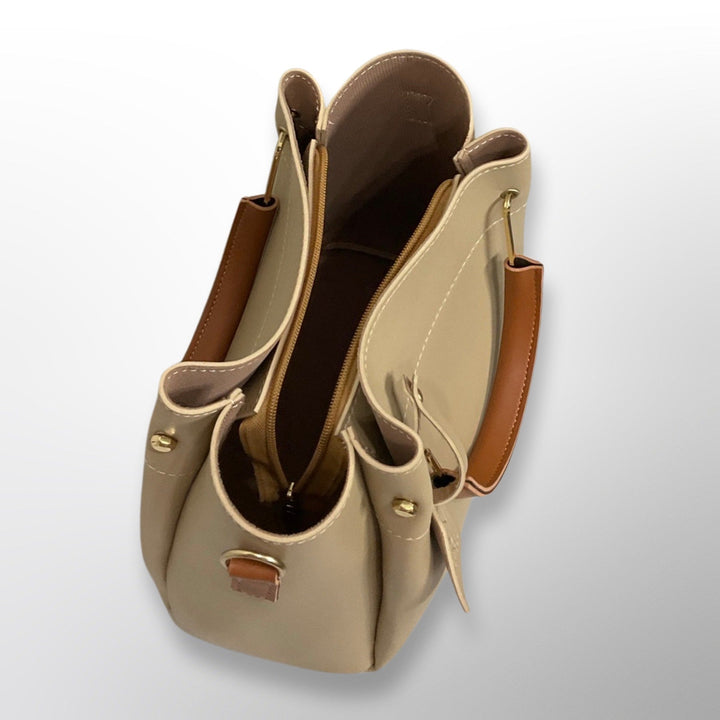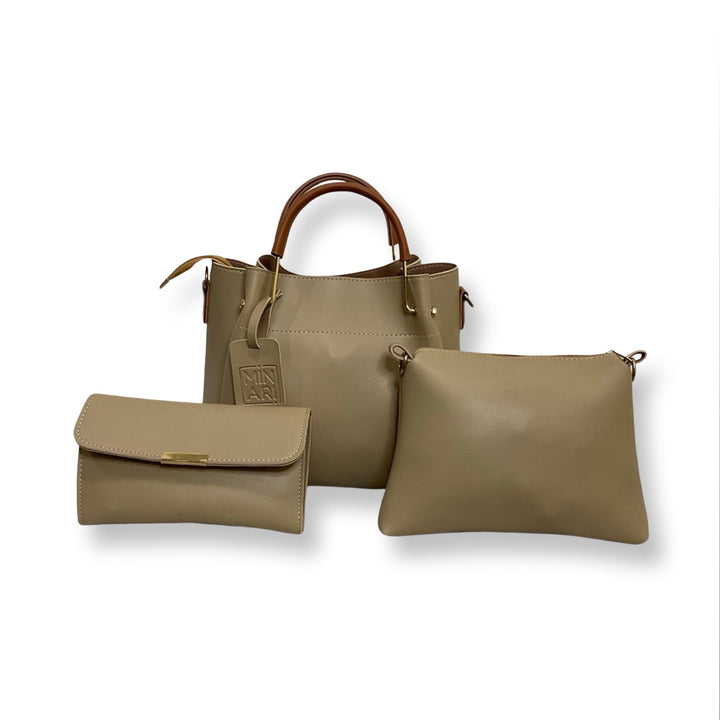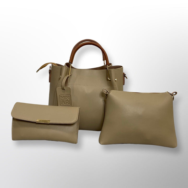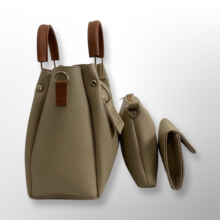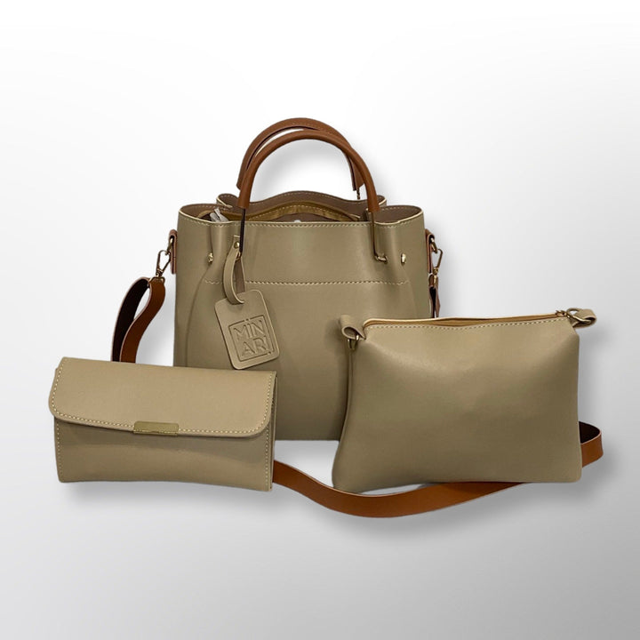 Helen 3 Piece Beige Handbag Set - Top Handle, Shoulder & Wallet