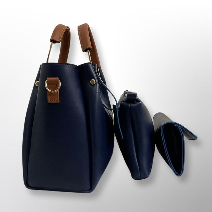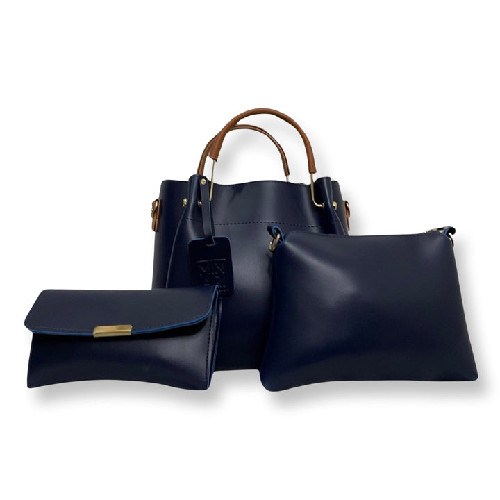 Elevate your day-to-day ensemble with this essential 3-piece bag set, where minimalist design meets peak functionality. The set comprises a spacious top handle bag complete with an additional shoulder strap for varied styling, a medium shoulder bag for everyday needs, and a chic wallet enhanced with a golden chain for an upscale cross-body option. Each piece is a testament to our commitment to style and practicality, ensuring you carry your essentials with ease and elegance.