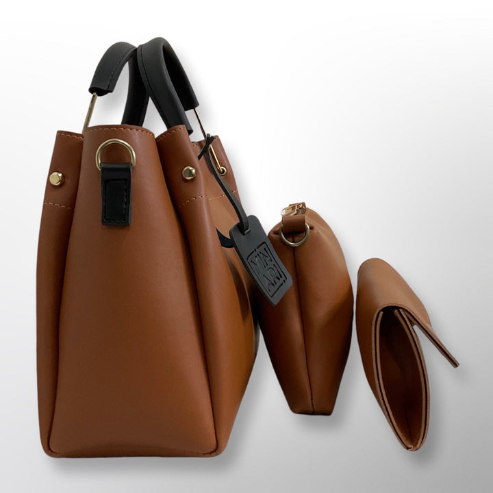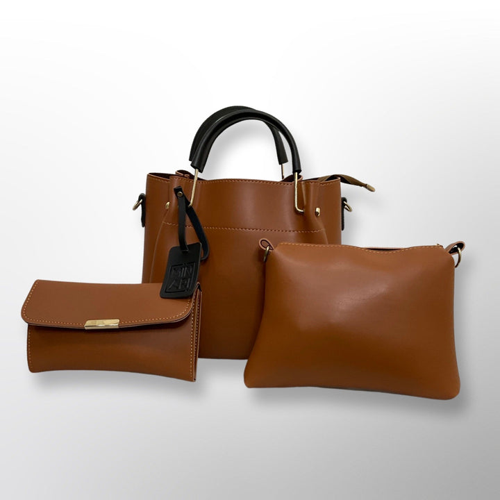 Helen 3 Piece Brown Handbag Set - Top Handle, Shoulder & Wallet
