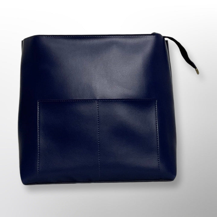 Elevate your everyday style with this sleek shoulder tote bag, a testament to eco-conscious fashion made from sumptuous vegan leather. Designed for the modern woman, it features two comfortable shoulder straps for easy carrying. Stay organized on the go with two external smart pockets, perfectly sized for your mobile phone and essentials. The interior reveals a spacious zippered compartment, keeping your belongings secure and accessible. This tote's minimalist design is both practical and chic, making it an impeccable addition to any ensemble.