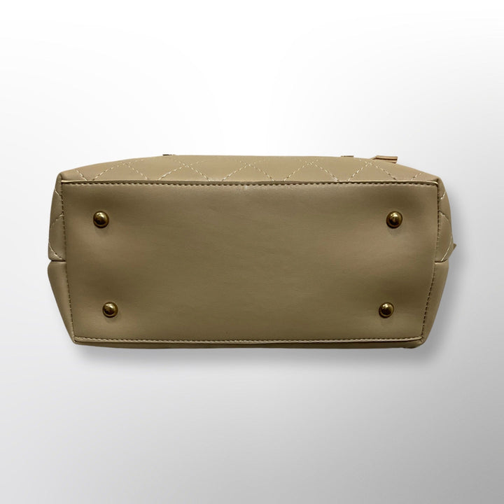 The handbag's exterior is fashioned from premium vegan leather, which not only imparts durability and a refined aesthetic but also stands as a testament to our commitment to cruelty-free fashion. Designed with double shoulder straps for balanced support, this handbag marries comfort with style, making it an indispensable addition to your accessory collection.