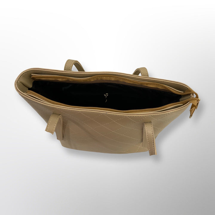 Elevate your everyday style with our sleek tote handbag, the epitome of functional elegance. Crafted to accommodate your bustling life, it features a spacious main compartment with a zippered closure, ensuring your essentials—from a wallet and phone to a tablet or laptop—are securely stowed yet readily accessible. Inside, a singular zippered pocket provides a dedicated space for smaller necessities such as keys, sunglasses, and cosmetics, keeping them organized and within easy reach.