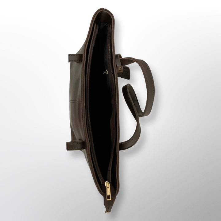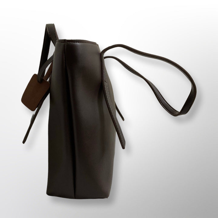 Elevate your everyday style with our sleek tote handbag, the epitome of functional elegance. Crafted to accommodate your bustling life, it features a spacious main compartment with a zippered closure, ensuring your essentials—from a wallet and phone to a tablet or laptop—are securely stowed yet readily accessible. Inside, a singular zippered pocket provides a dedicated space for smaller necessities such as keys, sunglasses, and cosmetics, keeping them organized and within easy reach.