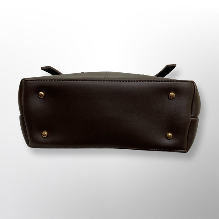 The handbag's exterior is fashioned from premium vegan leather, which not only imparts durability and a refined aesthetic but also stands as a testament to our commitment to cruelty-free fashion. Designed with double shoulder straps for balanced support, this handbag marries comfort with style, making it an indispensable addition to your accessory collection.