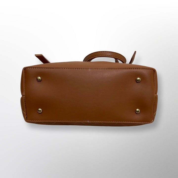 The handbag's exterior is fashioned from premium vegan leather, which not only imparts durability and a refined aesthetic but also stands as a testament to our commitment to cruelty-free fashion. Designed with double shoulder straps for balanced support, this handbag marries comfort with style, making it an indispensable addition to your accessory collection.