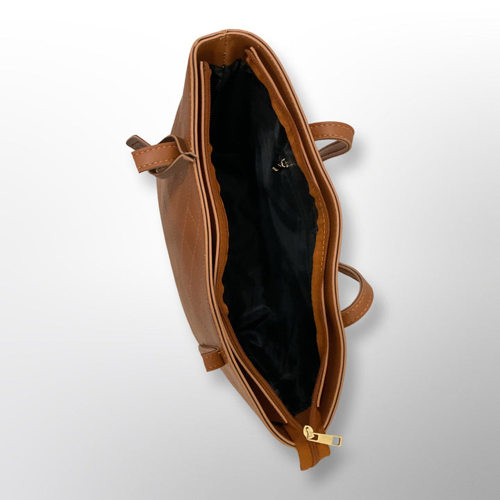 Elevate your everyday style with our sleek tote handbag, the epitome of functional elegance. Crafted to accommodate your bustling life, it features a spacious main compartment with a zippered closure, ensuring your essentials—from a wallet and phone to a tablet or laptop—are securely stowed yet readily accessible. Inside, a singular zippered pocket provides a dedicated space for smaller necessities such as keys, sunglasses, and cosmetics, keeping them organized and within easy reach.